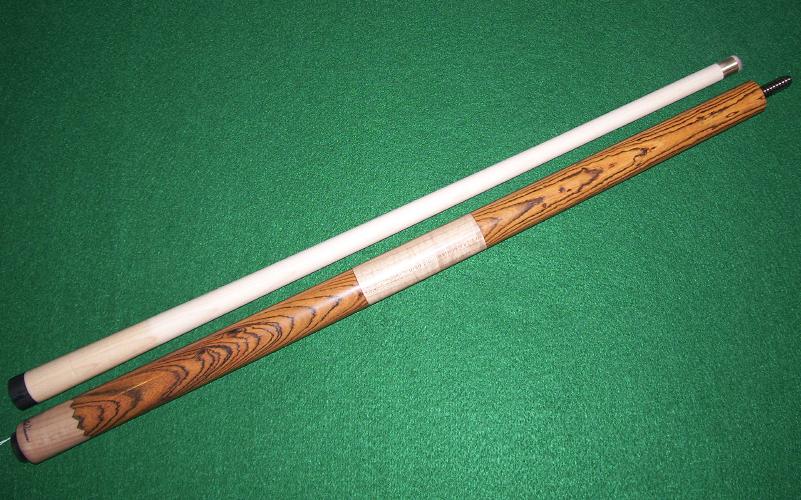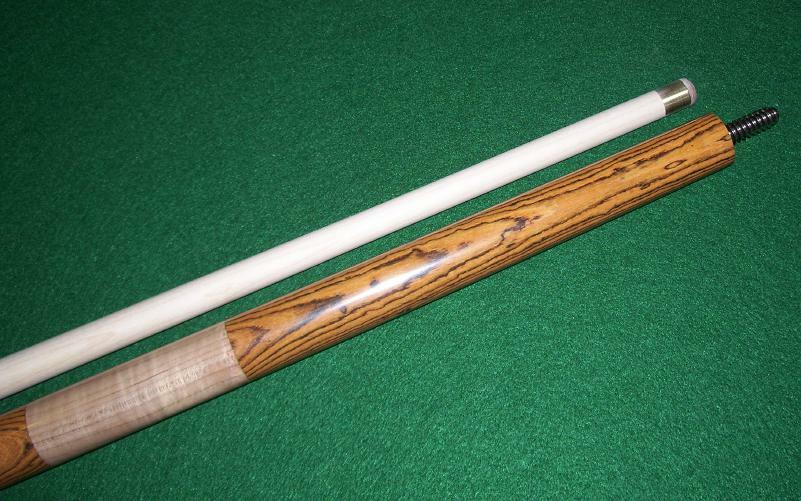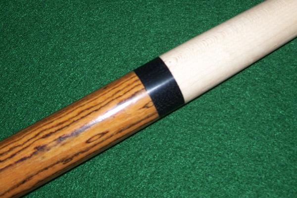 The 22" Hard Maple shaft on this masse' cue comes with a 13mm Karomi tip and a brass ferrule. The .950 joint has a black Phenolic collar and a 3/8-10 stainless pin into wood threads.