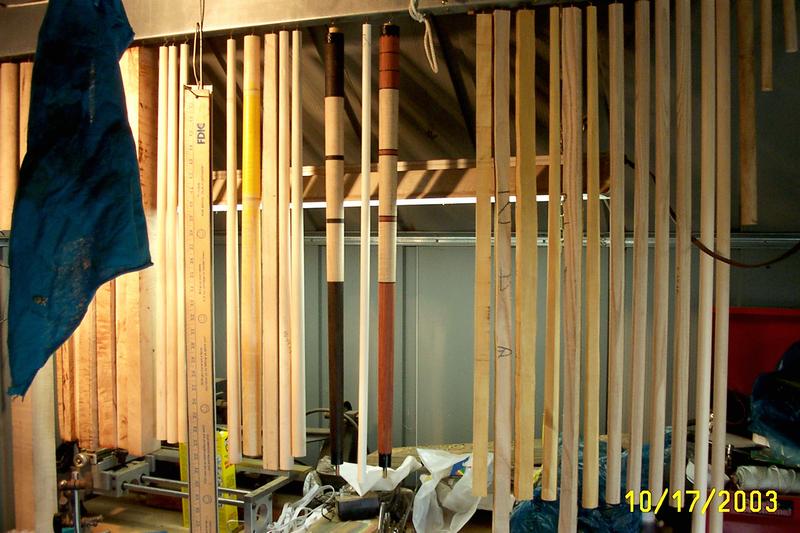 squares and dowels hanging from ceiling beams...